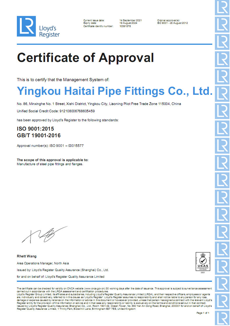 營口海泰金屬管業(yè)有限公司成立于2001年,是專業(yè)生產管道配件的制造經(jīng)營企業(yè)。公司占地面積兩萬五千平方米,坐落于中國遼寧省港口城市營口。營口一市兩港(營口港、鲅魚圈港),東臨大連港四季通航,陸路運輸四通八達交通便利。